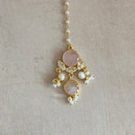 The Erina Rose Choker Set showcases stunning rose quartz stones, enhanced with sparkling cubic zirconia crystals for a subtle yet striking shimmer. This sophisticated set includes matching statement drop earrings and a tikka, designed to create a cohesive and graceful look. Perfect for special occasions, it adds an elegant touch to any outfit with its refined combination of soft hues and dazzling accents.