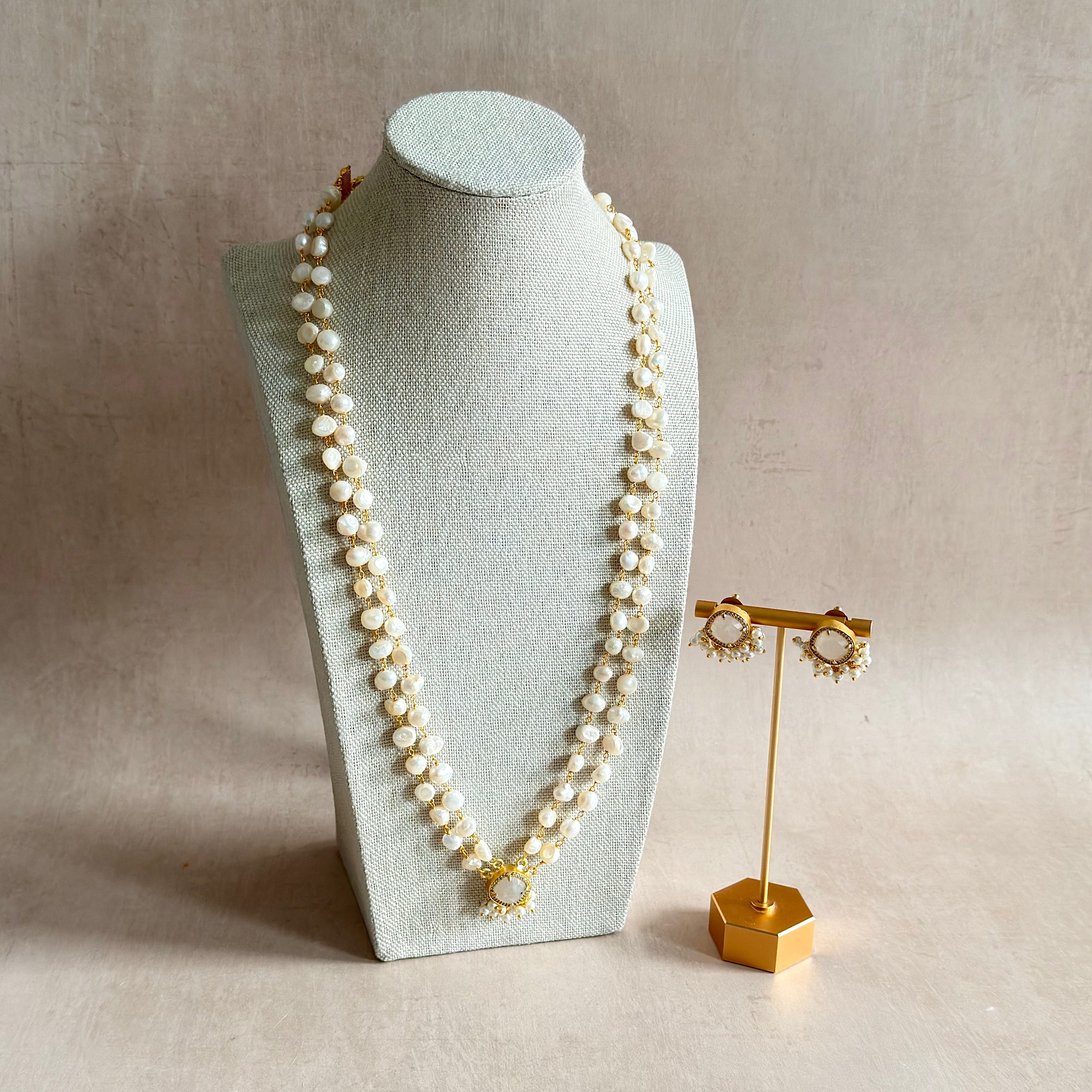 Layali White Pearl Mala Necklace Set - Ahseya & Co