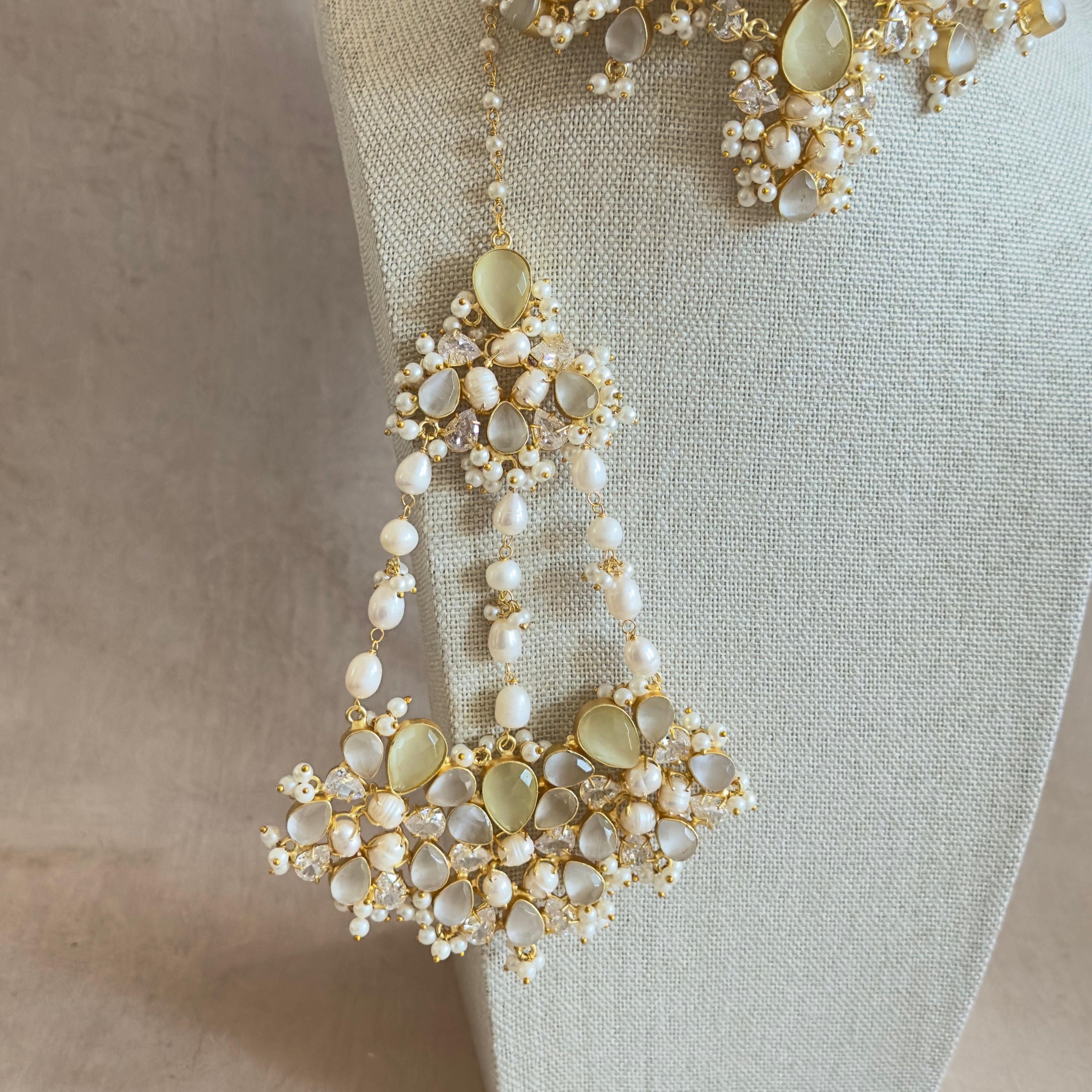 Our Jhumar Collection brings a modern twist to a classic accessory. Designed to sit elegantly on the side of the head, each piece blends traditional artistry with contemporary style, making it the perfect statement for weddings, parties, and fashion-forward looks. Whether paired with a tikka or worn solo, our exclusive Jhumar headpieces are crafted to elevate your style with effortless glamour.
