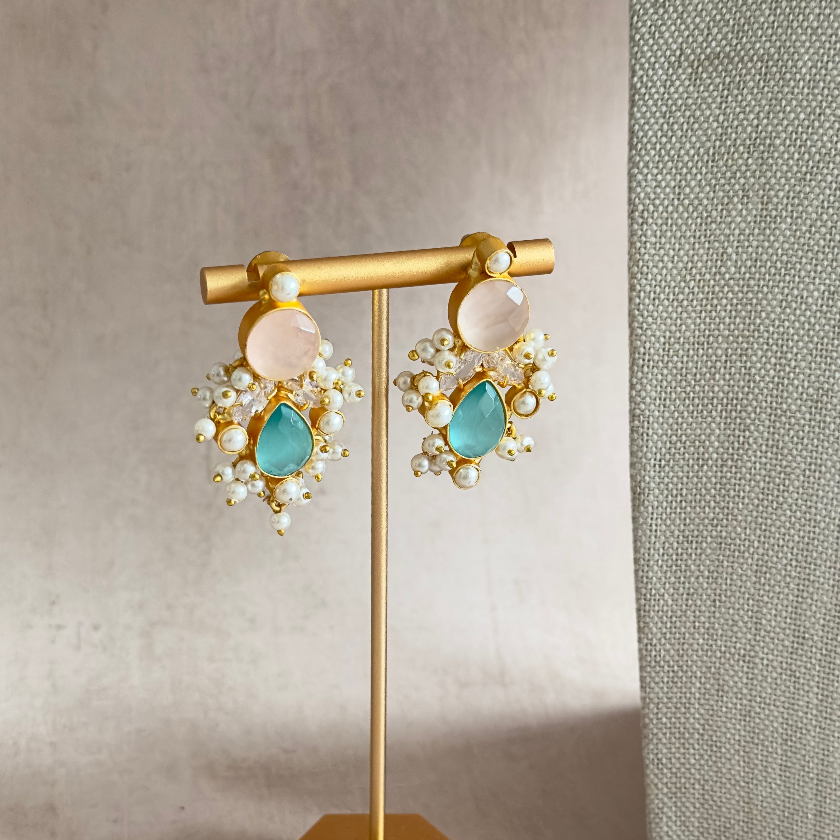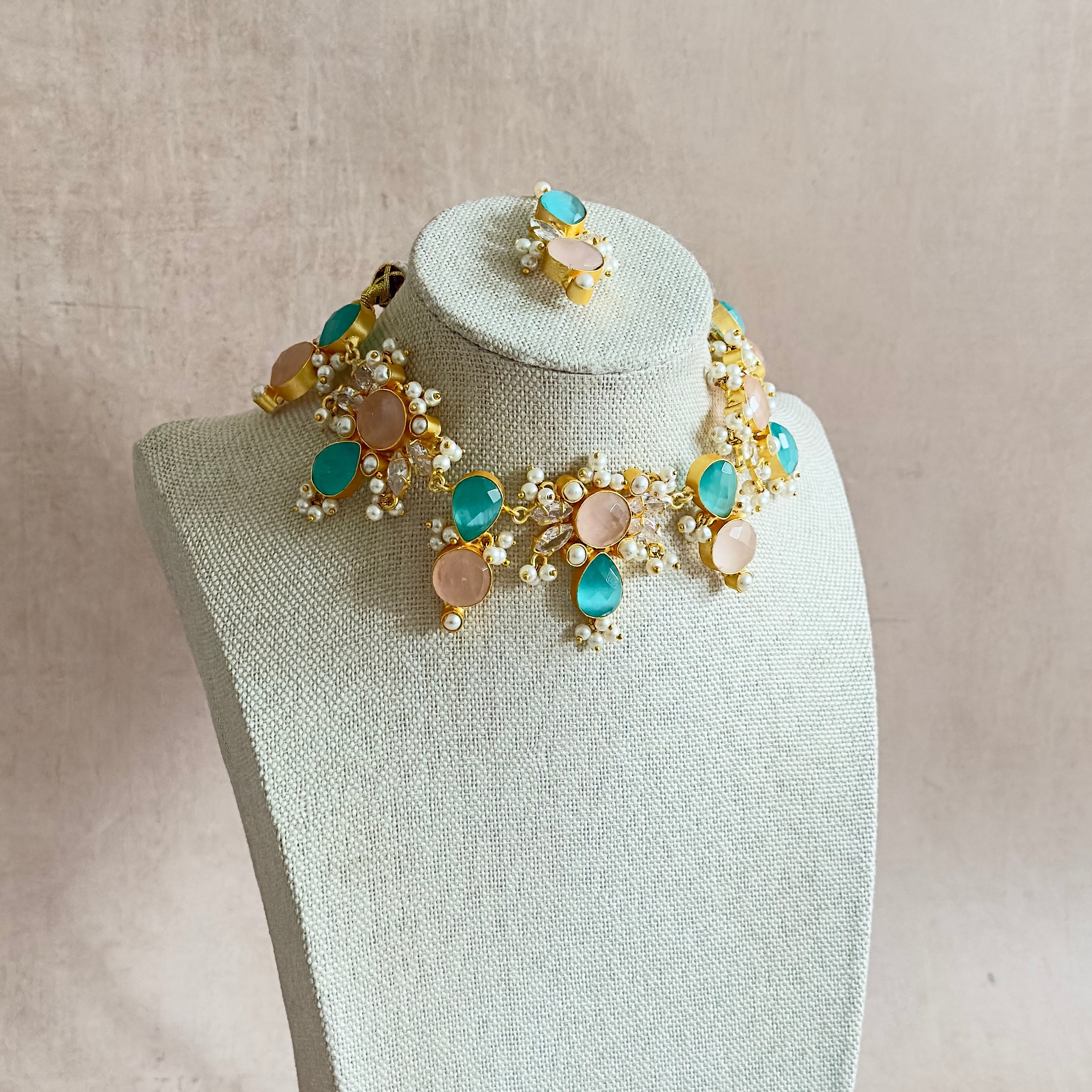 Kaelani Pink Blue Crystal Necklace Set - Ahseya & Co
