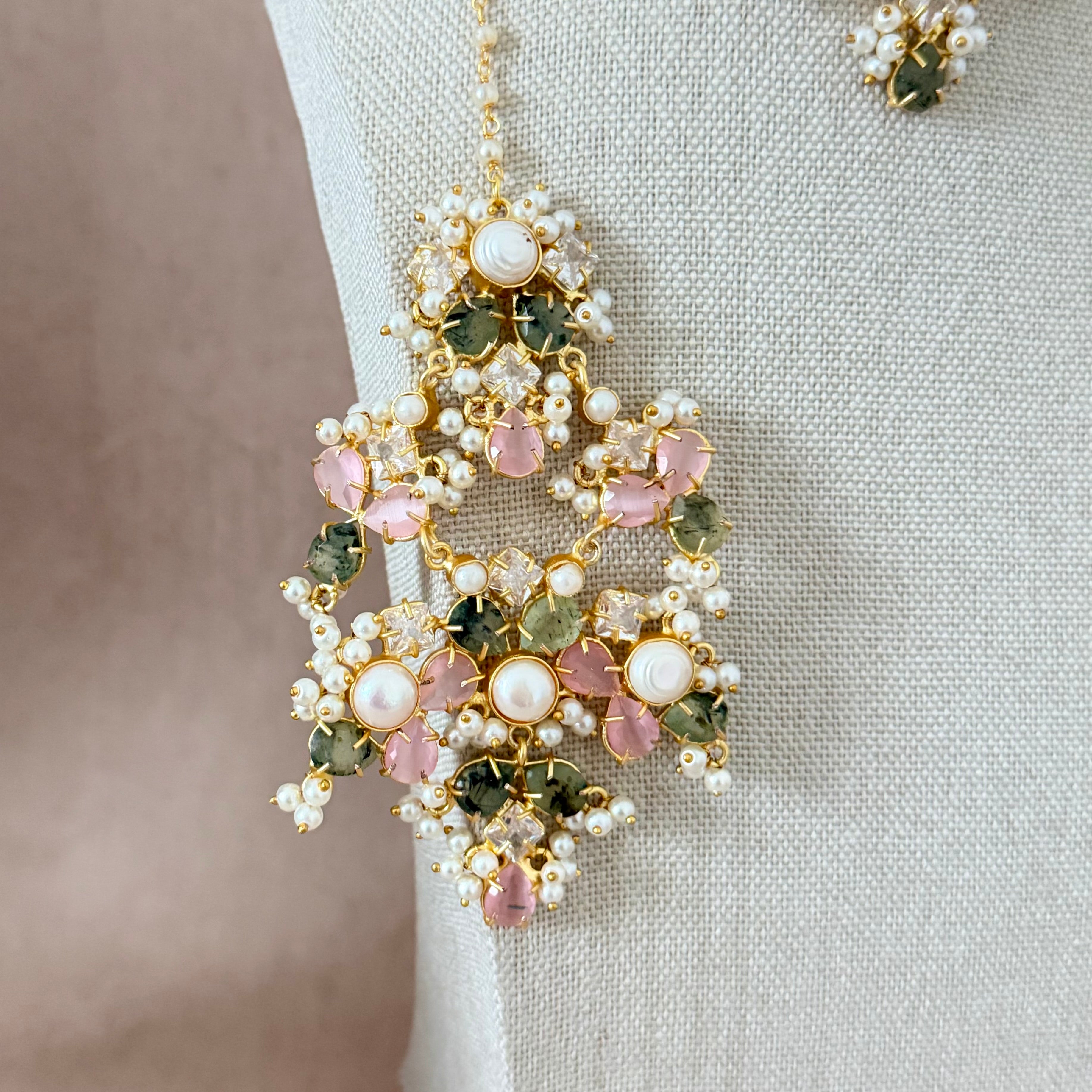 Elevate your traditional ensemble with the Shyla Olive Jhumar, a striking headpiece designed to make a bold statement. Pair it with the Shyla Choker Set to complete a captivating, elegant look.