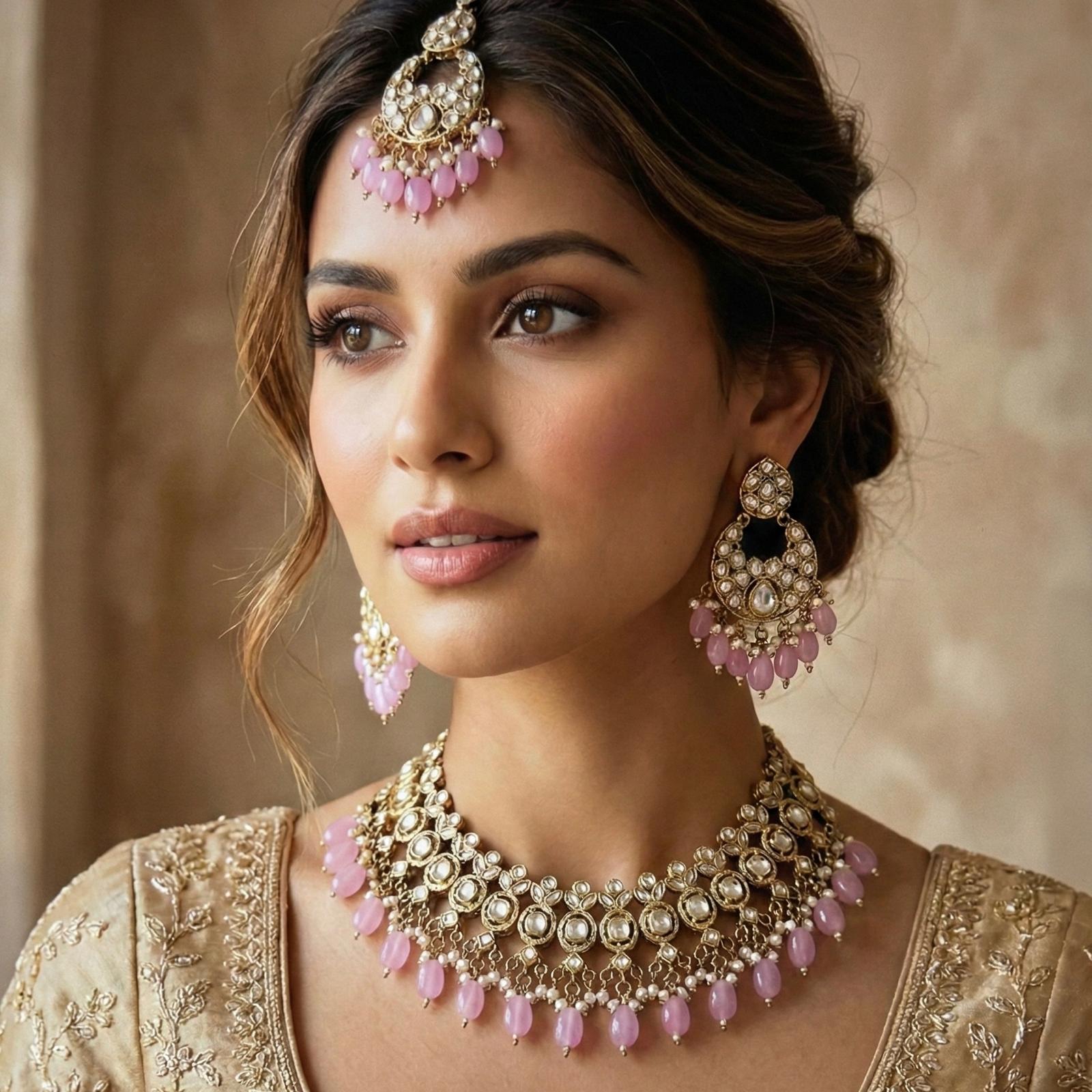 Elevate any look with our elegant Alicia Lilac Necklace Set. This stunning set features lilac beads in a antique gold finish for a touch of vintage glamour. The crystal zirconia adds extra sparkle and shine, while the set comes complete with matching earrings and tikka. A must-have for any special occasion.