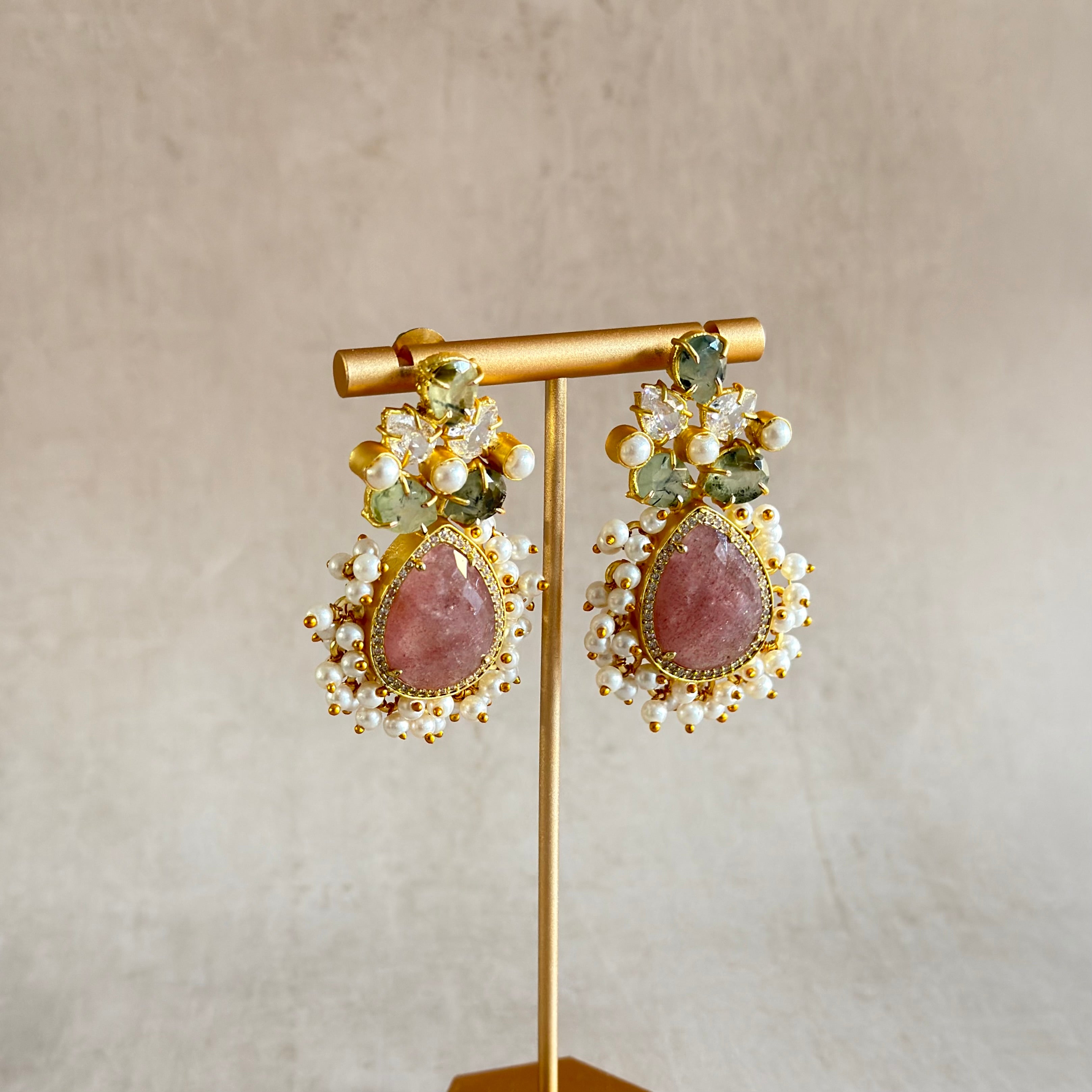 Beautiful stud earrings combining rustic pink stones with soft prehnite accents. These natural gemstones create a warm, earthy look that works with any style. Lightweight and comfortable, they're the perfect addition to your jewellery collection.