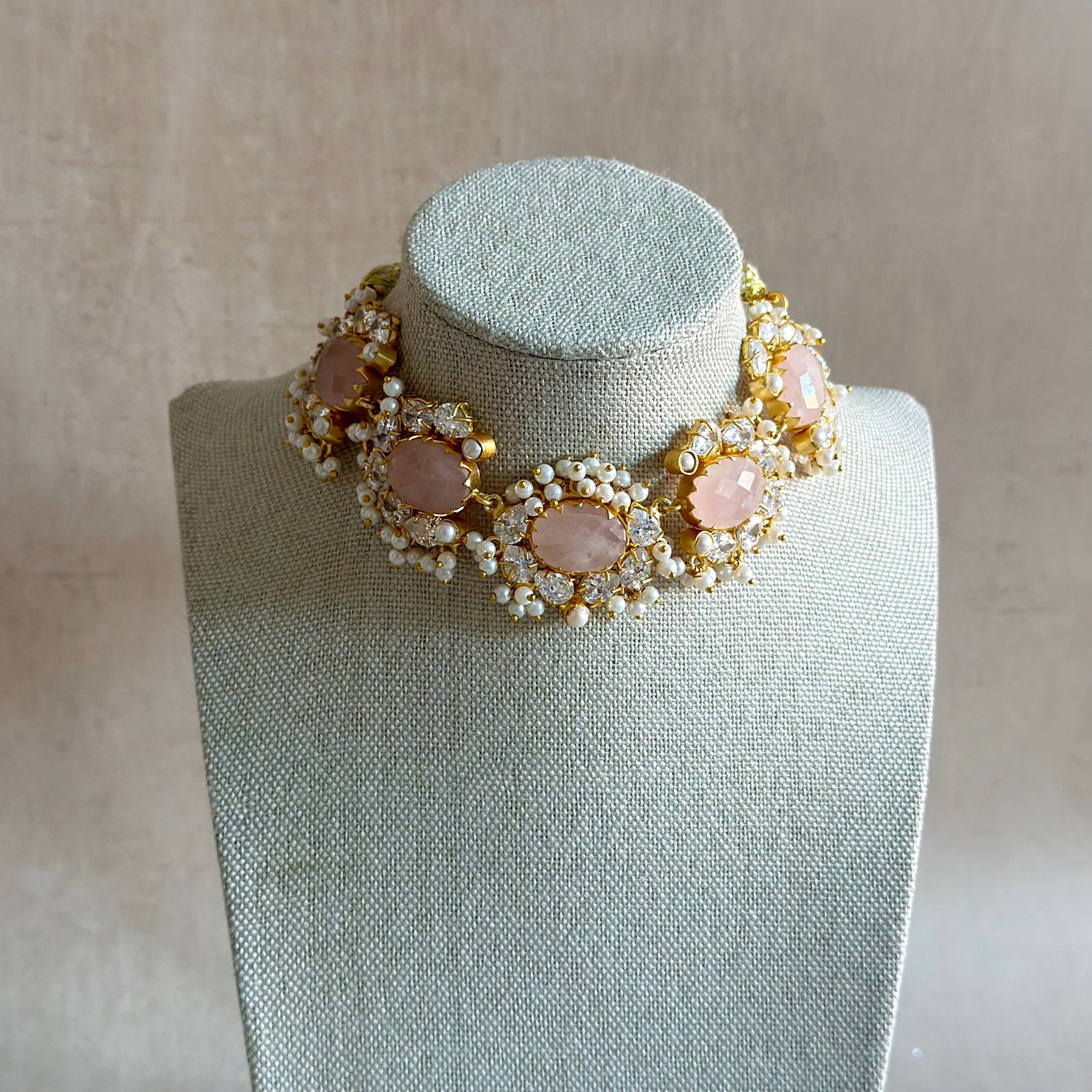 The Inaliya Rose Crystal Choker Set combines pink stones with sparkling cubic zirconia crystals. Featuring a choker necklace and matching stud earrings, this set delivers instant sophistication for any occasion.