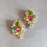 Elevate your look with the Ozara Olive Stud Earrings, featuring elegant hues of olive and pink stones. Accented with sparkling cubic zirconia crystals and delicate pearl details, these earrings offer a refined touch of sophistication, perfect for any occasion.