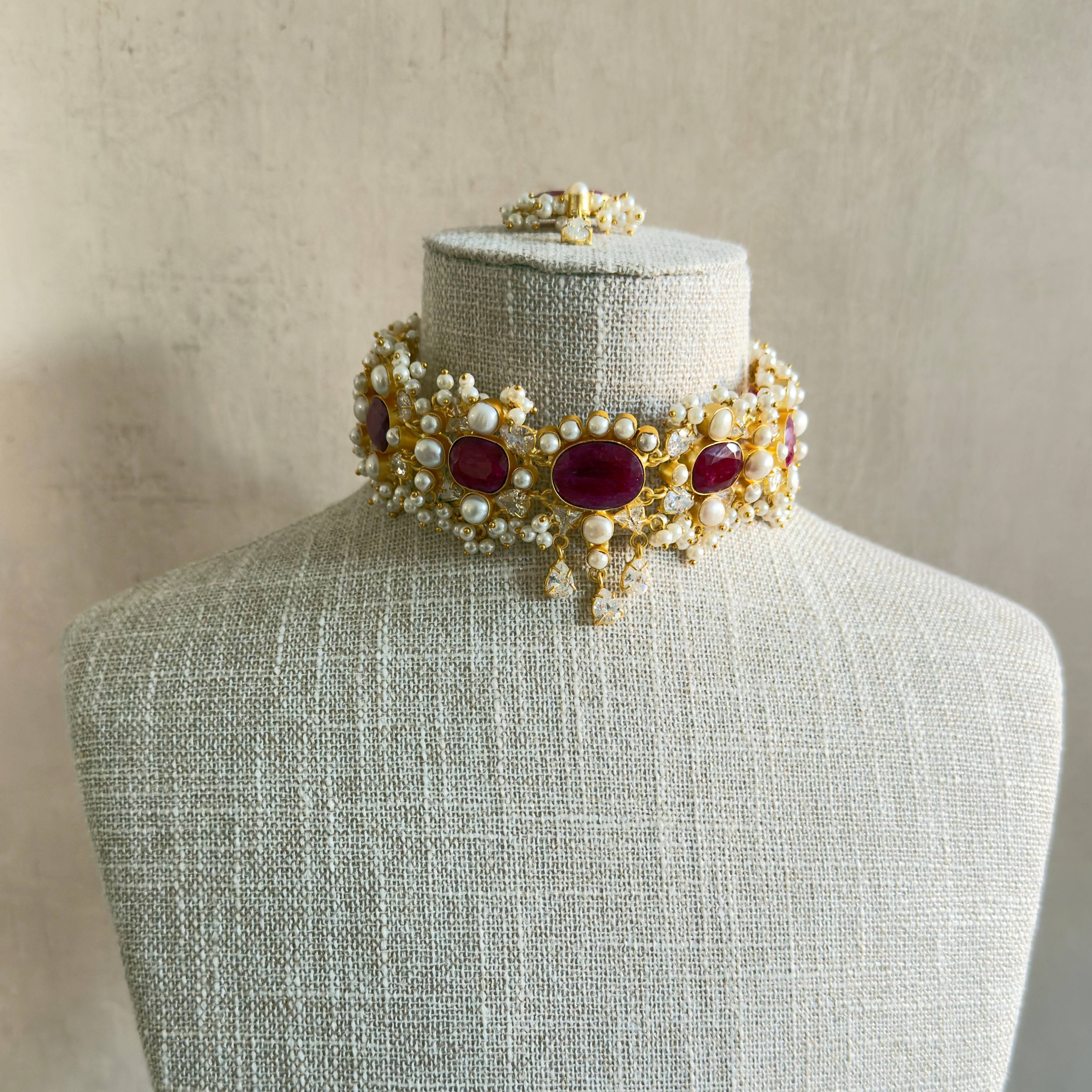 Khawla Fuchsia Pearl Choker Set