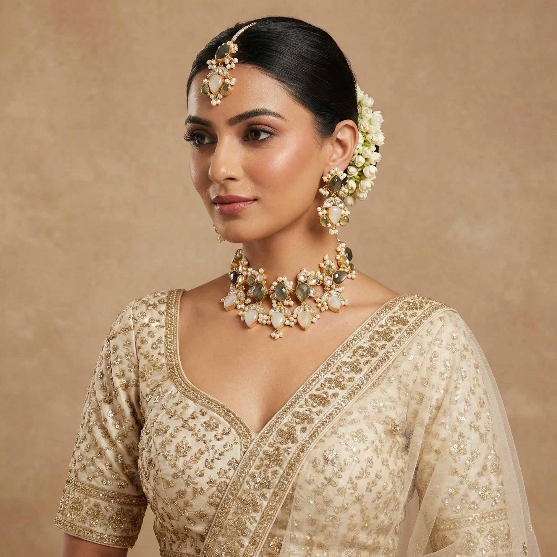 Inaliya Olive Crystal Choker Set