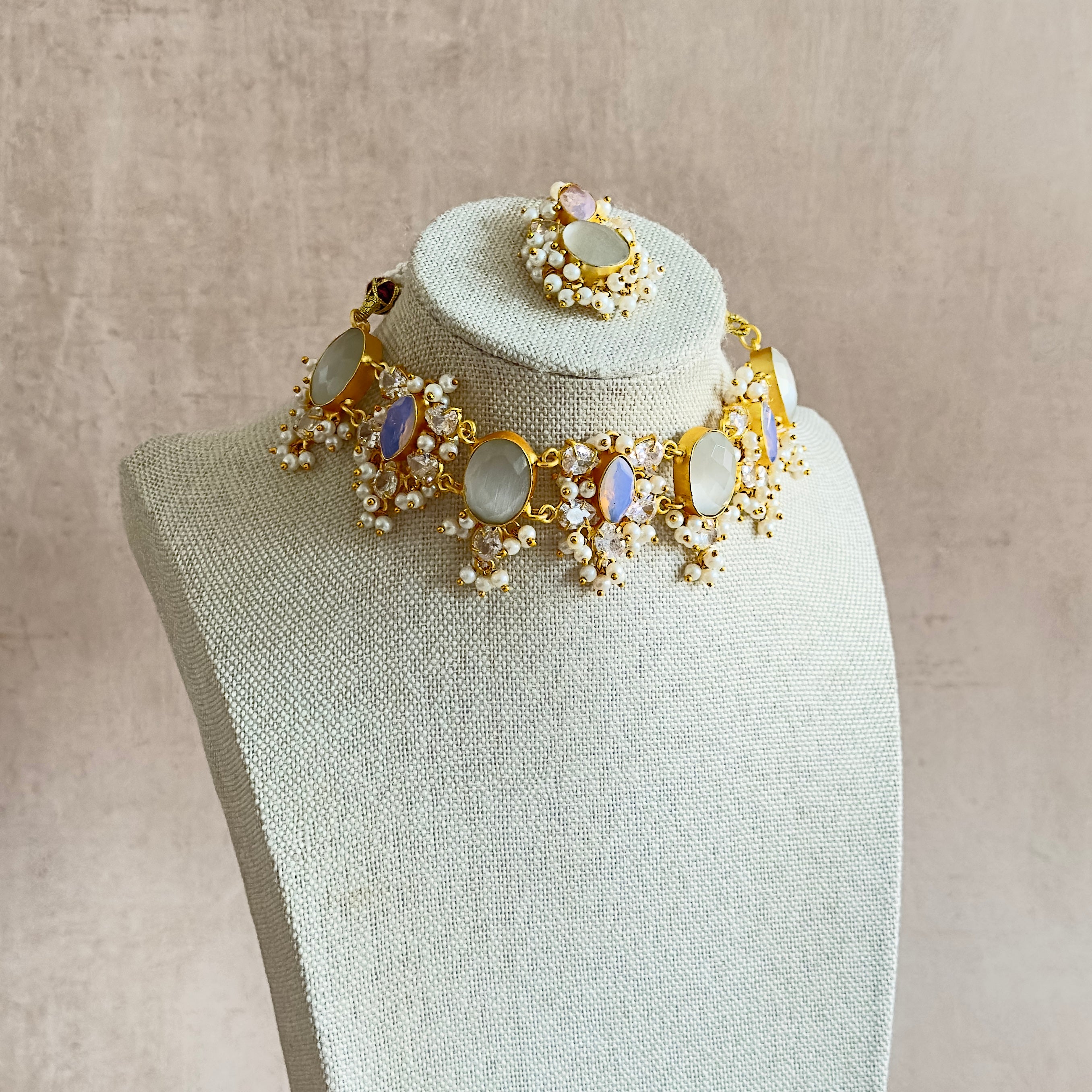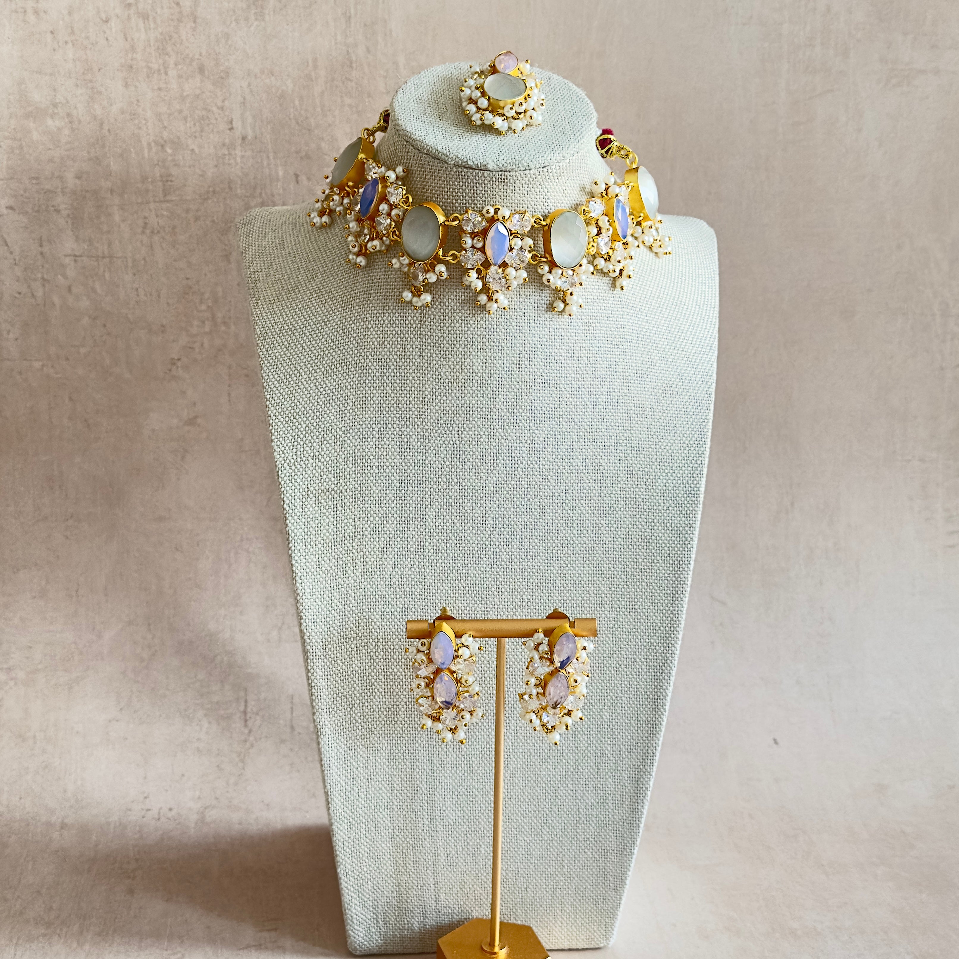 Lauretta Grey Crystal Choker Set - Ahseya & Co
