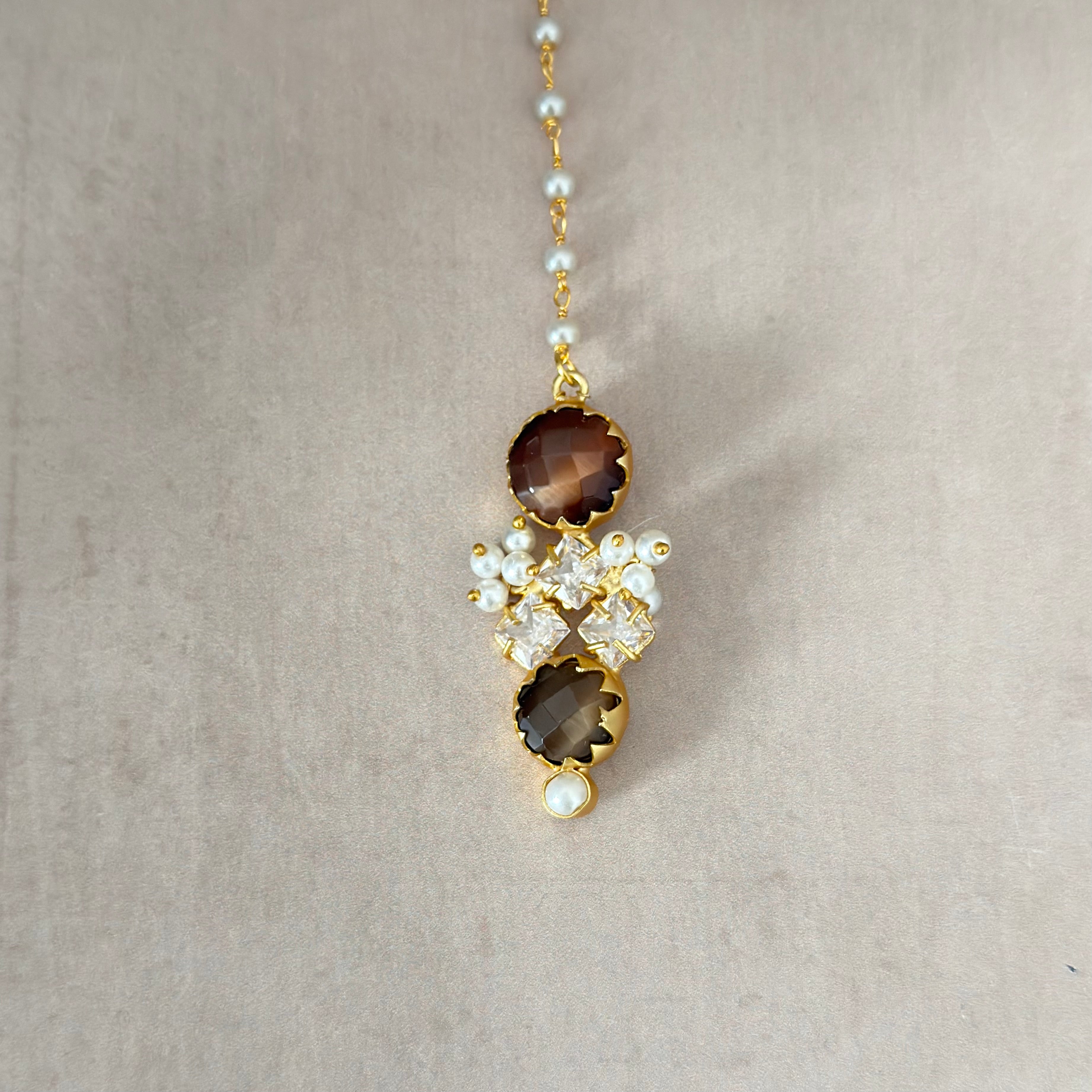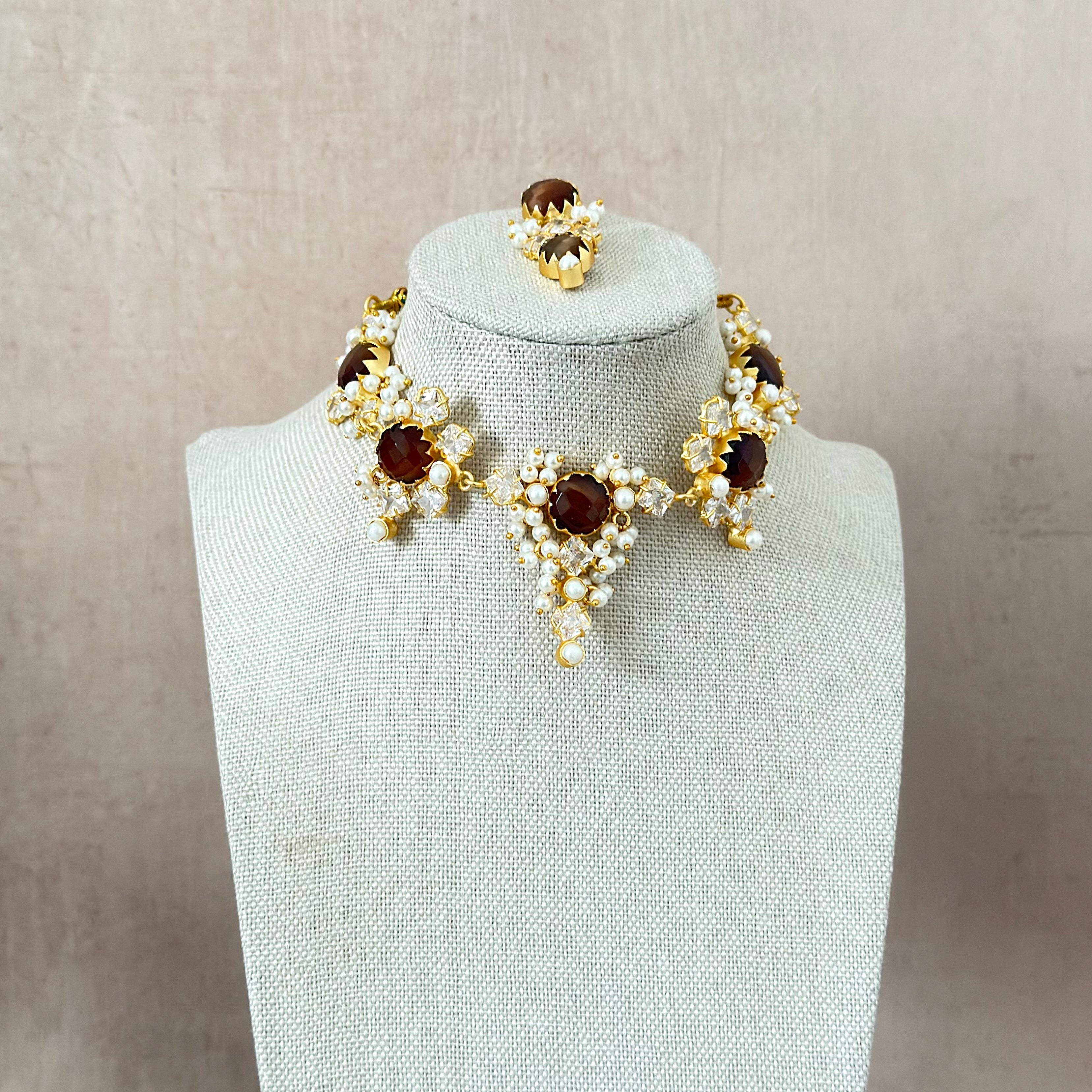 The Miah Espresso Crystal Choker Set features beautiful deep brown stones paired with sparkling cubic zirconia crystals. This elegant choker adds instant glamour to any look with its cat-eye affect and brilliant sparkle. Perfect for special occasions.