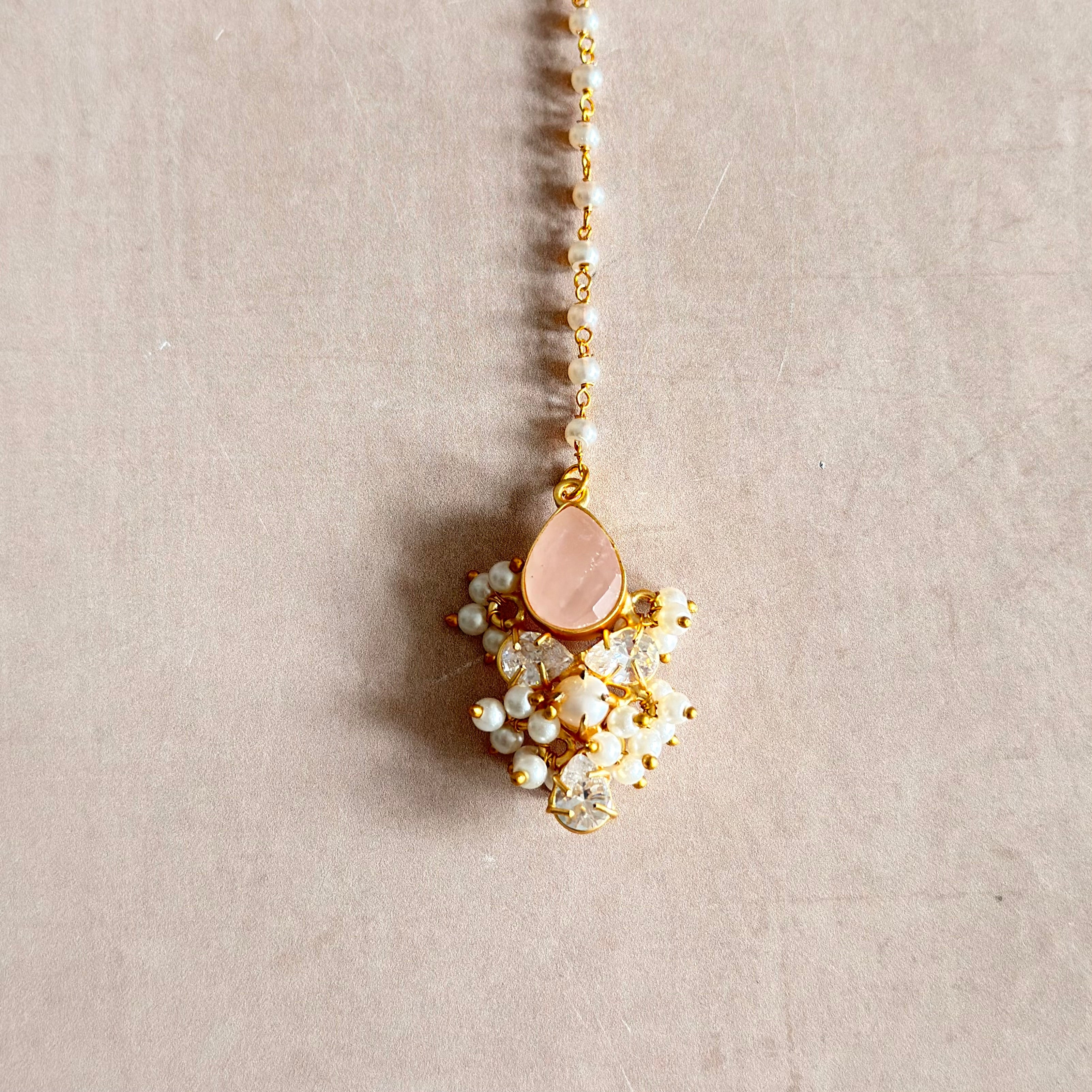 Elevate your jewellery collection with the Winslet Rose Crystal Choker Set, featuring delicate blush tones that complement any complexion. Adorned with sparkling cubic zirconia crystals, this three-piece set includes a stunning choker, matching stud earrings, and a traditional tikka for versatile styling. Perfect for any occasion.